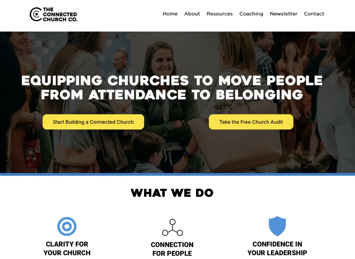 The Connected Church Co. exists to help pastors and church leaders build churches where people move beyond attendance into genuine belonging. We partner leader to leader to bring clarity, consistency, and intentional systems that support meaningful connection and discipleship. Because healthy churches aren’t defined by who shows up, but by who finds their place.